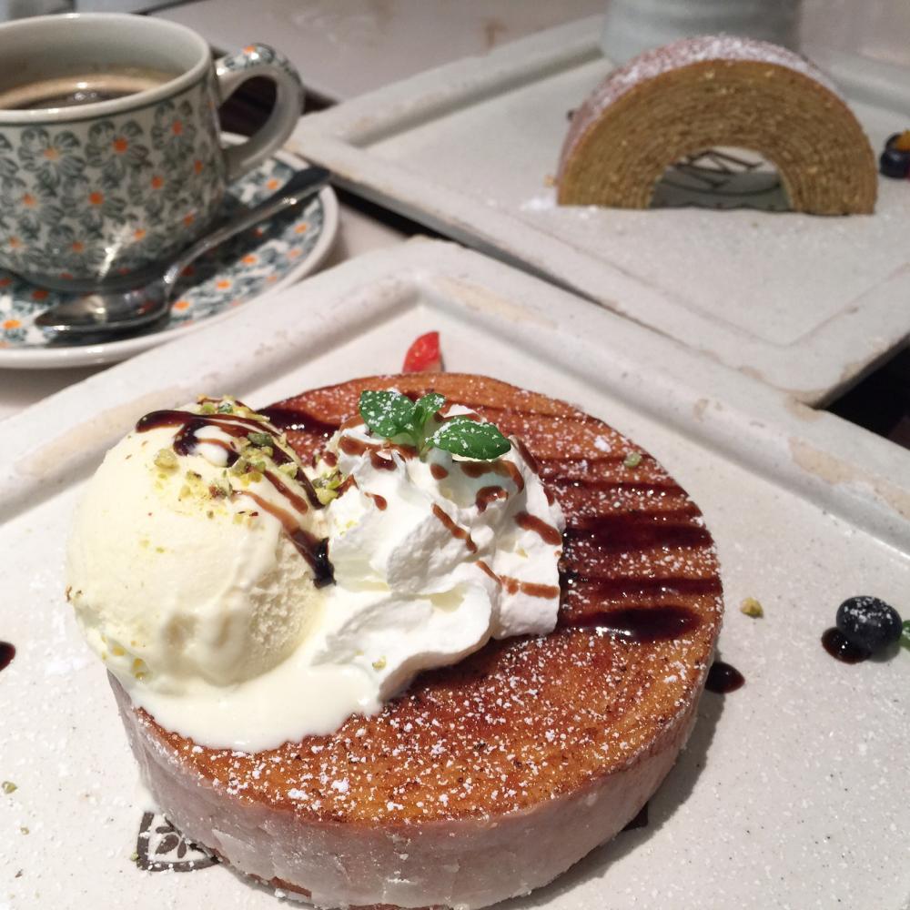 写真は、バウムクーヘンキャラメリゼとタマクーヘン。
