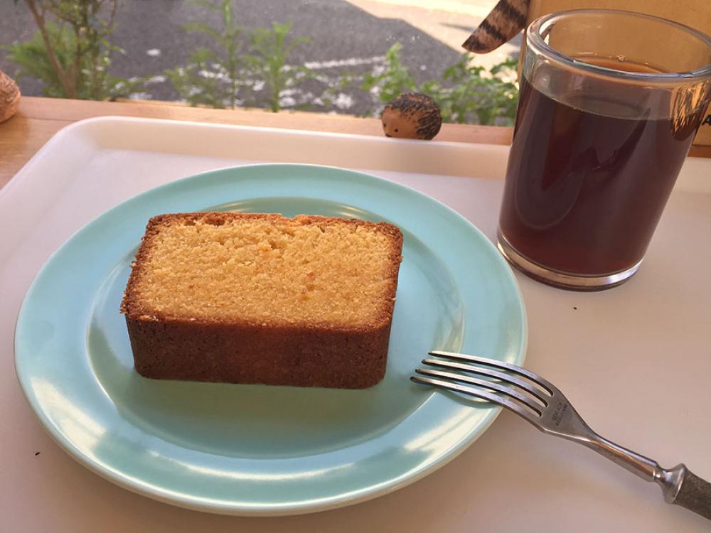 ココナッツスクエアとコーンミールアーモンドブレッド ラベンダー入りとグアテマラ ロスナードスコーヒーをいただきました。