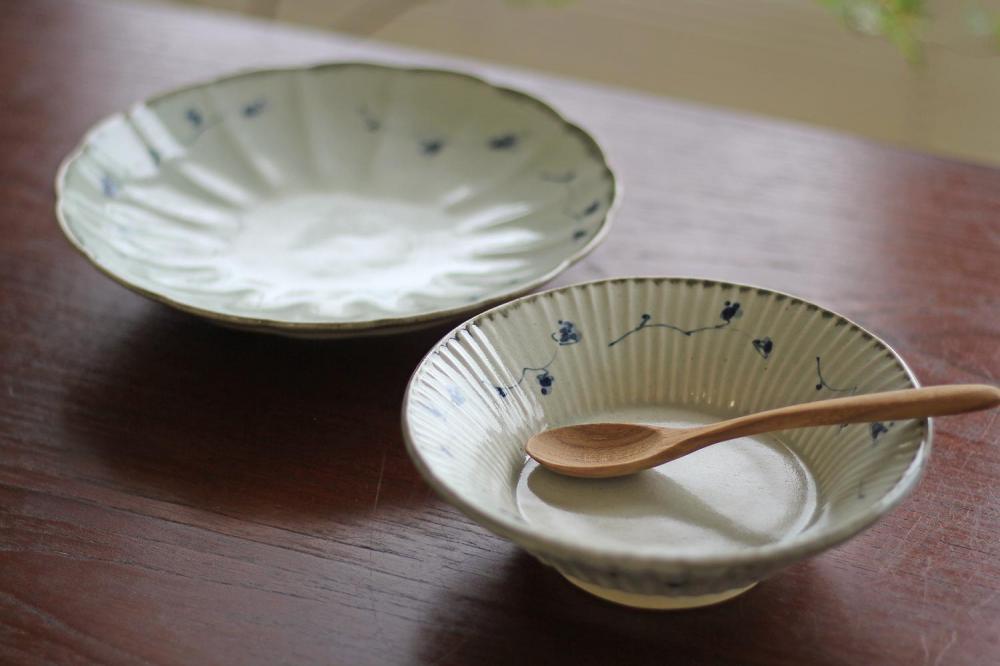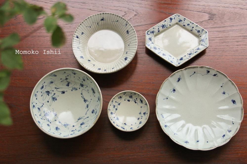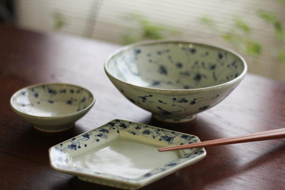 どこか懐かしい、花唐草の繊細な染付が印象的な石井桃子さんの器。日々の食卓に馴染むうつわ作りをされています。