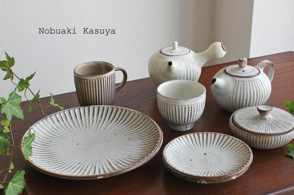 東京日野市に工房を構える 粕谷修朗(カスヤ ノブアキ)さん。 粕谷修朗さんの粉引の器は、シンプルで整ったデザインのなかに、手しごとならではの揺らぎも感じられるところが魅力。使いやすく美しい日常の器です。
