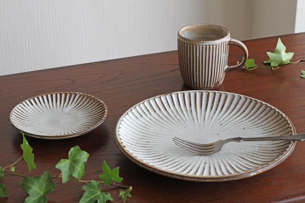 しのぎ皿7寸と4寸、マグカップ、湯呑みが届いています。